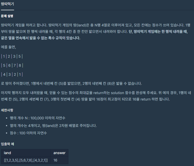 land[i][1] += max(max(land[i-1][0],land[i-1][2]),land[i-1][3]);